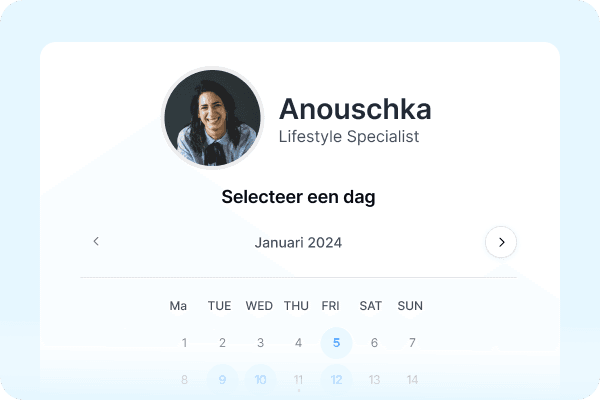Onze oplossing is eenvoudig te integreren via al jouw kanalen. Plaats het gemakkelijk achter de knop 'Maak een afspraak'. Ook het toevoegen van de optie “Afspraak boeken” onder jouw linkedin profiel en blogs is zo geregeld.
