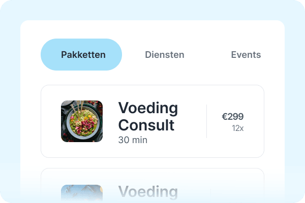 Van gratis intakes tot betaalde (groeps)sessies, allemaal direct te plannen, boeken en betalen via jouw website.
